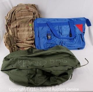 Lot Details: Boeing Engineering Team bag 14" x 22" x 10", Camelbak backpack 13" x 20" x 6"& green duffel 18" x 22" x 12".