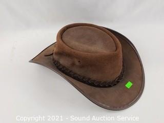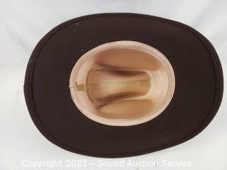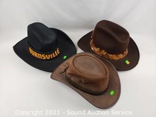 Lot Details: One is genuine leather, do not see a brand. JC Penney Felt S: 7-1/4-7-3/8. Burnsville banded S: S.