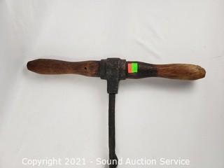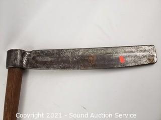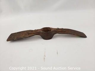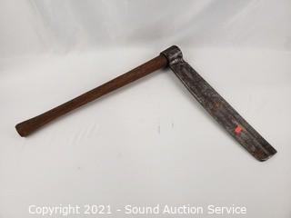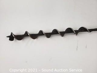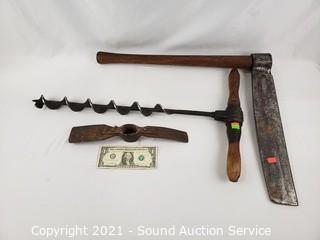 Lot Details: Coski Strongback 16" Froe, Pickaxe head, & hand forged wrought iron auger drill. 20" x 1-3/4" dia.