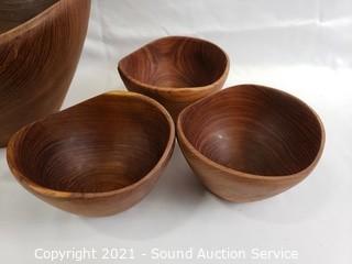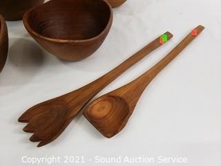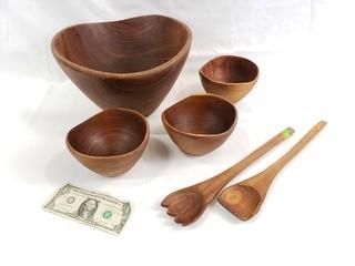 Lot #0202: 6pc Genuine Teak Salad Bowl Set