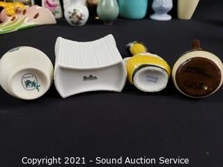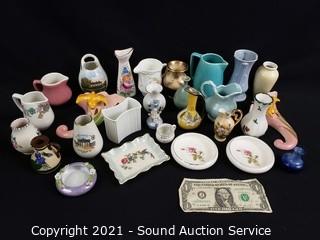 Lot Details: Poole, Lamberton Scammell, Coorsite porcelain, Dragon Ware, Franciscan, Chadovia, Herend Hungary, German, Wedgwood and more. 1.25" to 5" tall.
