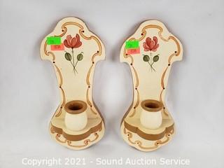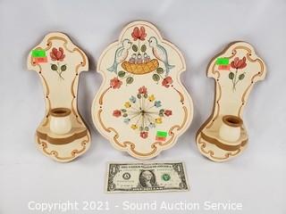 Lot #0139: Hand Painted Quartz Clock & Candle Sconces