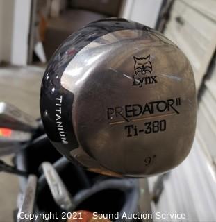 Lot Details: Caddy is a Wide-Trac, brands of clubs include Wilson, T-Line, Ryder, Lynx and others.