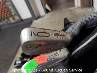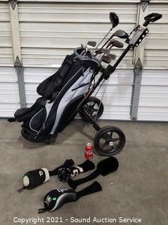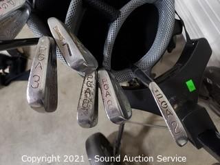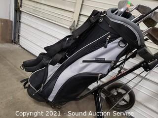 Lot #0047: Knight Golf Bag w/Various Clubs & Caddy