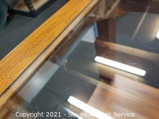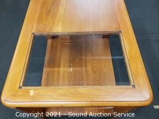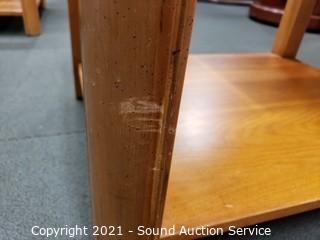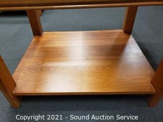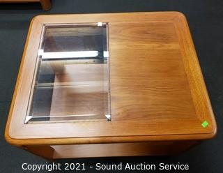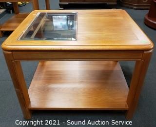 Lot #0022: Medium Finish Oak 2-Tier Glass Top Side Table
