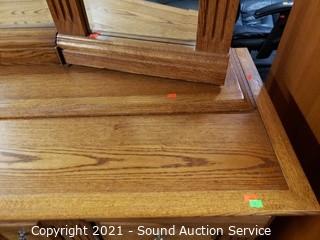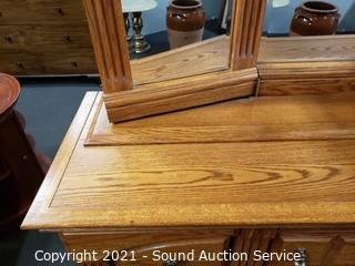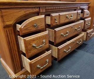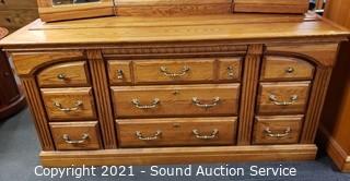 Lot #0024: Michael Howard Oak 9-Drawer Vanity Dresser