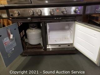 Lot Details: Built in lower cooler. Comes with propane tank. Igniter & burners are working. 48" H x 68" W x 23" D.