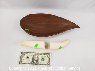 Lot #0138: Pair of Tusks & Signed Pottery Plate
