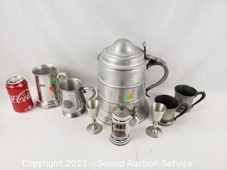 Lot #0143: Pewter Mugs, Stein & Cordials