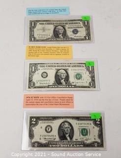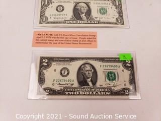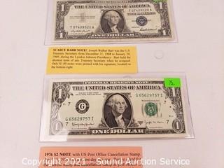 Lot Details: Includes 1976 $2 note, 1963 B Scarce Barr note and 1957 blue seal old silver certificate