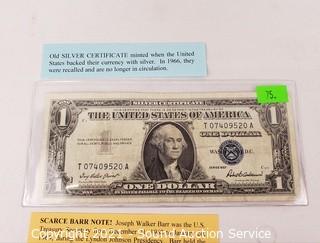 Lot #0075: Scarce Barr Note, $2 Note & Old Silver Certificate