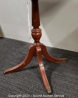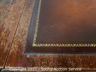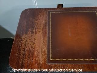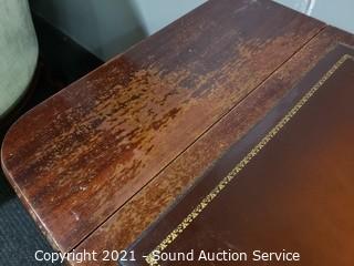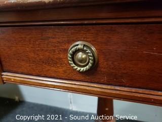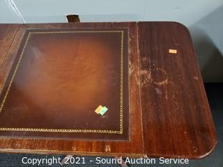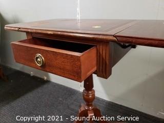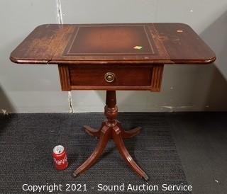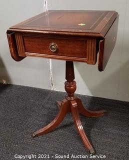 Lot #0039: Vtg Cherry Finish Leather Top Drop-Leaf Side Table