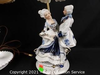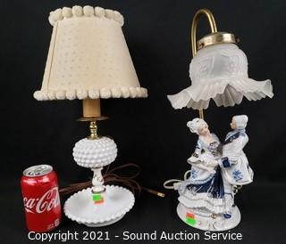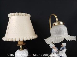 Lot #0187: Vtg. Milk Glass & Victorian Porcelain Lamps