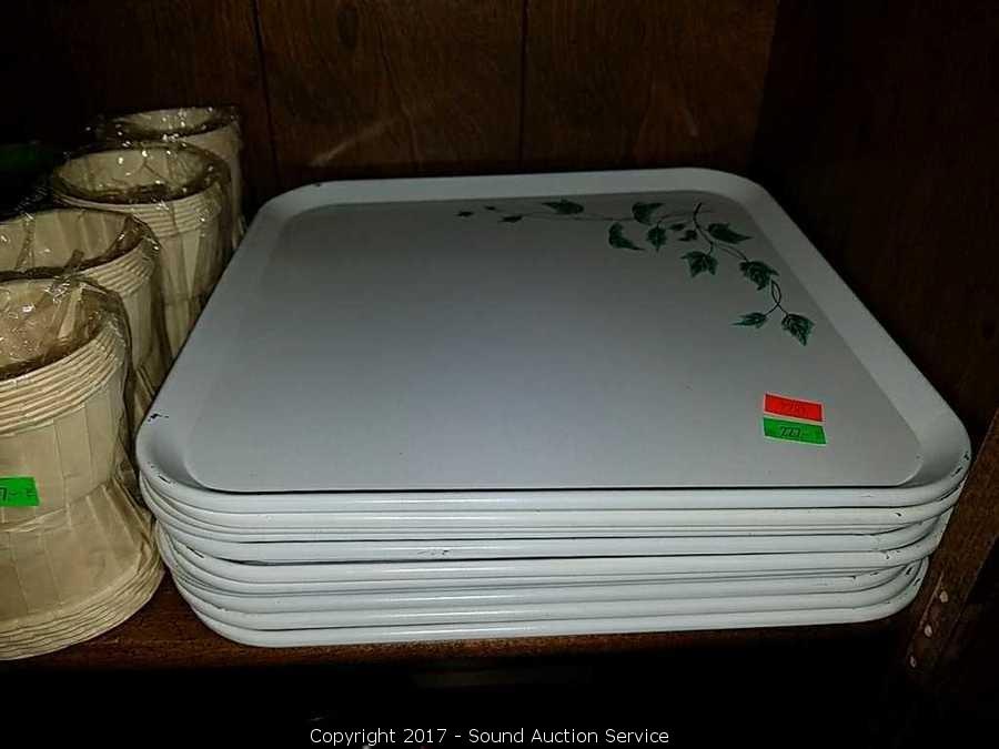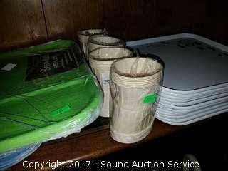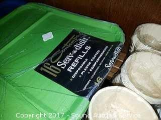 Lot #0213: 12 Tin Luncheon Plates w/Disposable Inserts & Cups