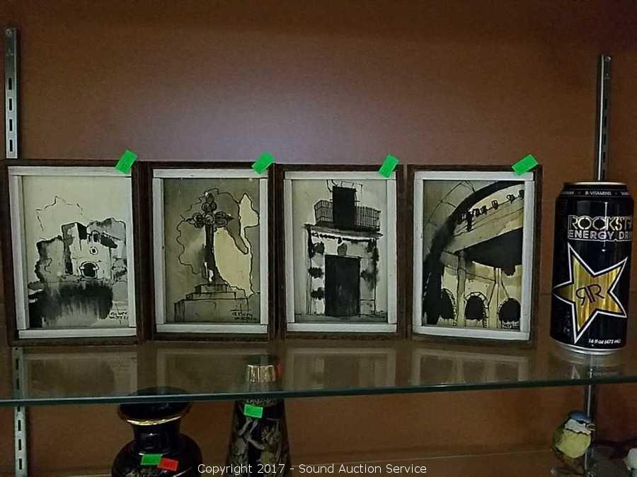 Lot #0162: 4 A/S on Wood Shadowbox Artwork