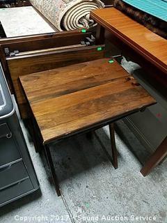 Lot #0125: Set of 4 Dark Stain Pine TV Trays