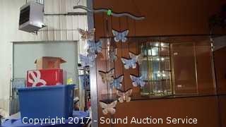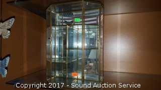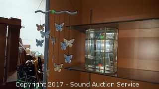 Lot #0055: Brass & Glass Mirrored Shelf & Butterfly Windchime