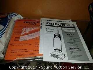 Includes 9 compact canister bags, new belts, exhaust filters, 12 Oreck XL vacuum bags. Refer to photos for more information.