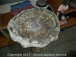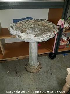Bird bath section is pretty weathered. Approx. 28" tall, 21" diameter.