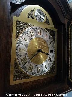 In excellent working condition, purchased in Germany. Etched brass faceplate & numbers, 3 weight, skeleton key door locks with 2 keys. Etched into the faceplate are the words "Tempus Fugit, Latin for Time Flies. Approx. 81" tall, 21" wide and 11" deep.