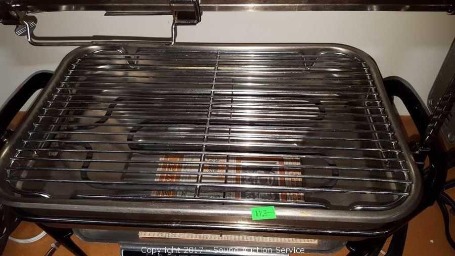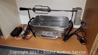 IN excellent condition, looks hardly used if ever. Comes with two small extension cords and an extra rotisserie motor.