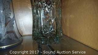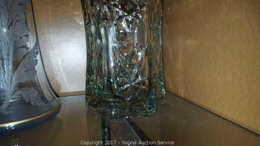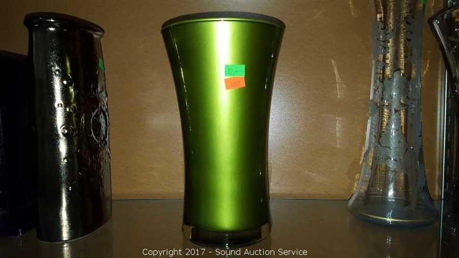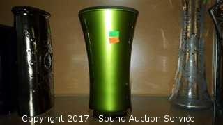 One is a green Kace art glass vase.