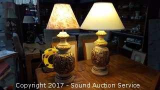 Lot #0006: Matching Pair of Pottery Table Lamps 33"