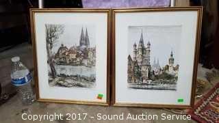 Lot #0028: Pair of German A/S Watercolor Prints