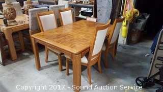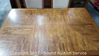 Lot #0005: Tessellated Oak Top Dining Table w/4 Chairs