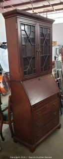 Lot #0037: Nice Mahogany 3-Drawer Secretary Hutch