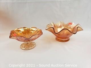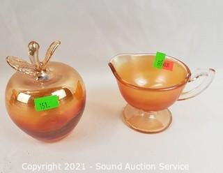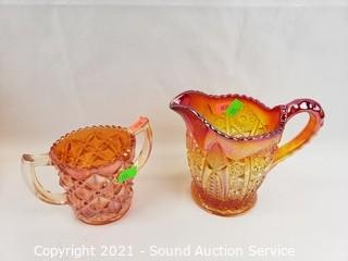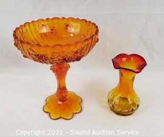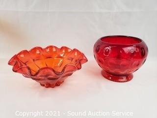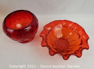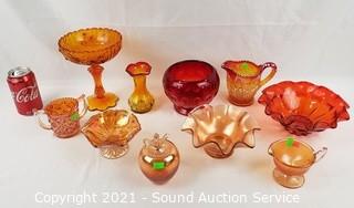 Lot #0151: 10pc Vtg. Amberina, Ruby, Iridescent Glassware