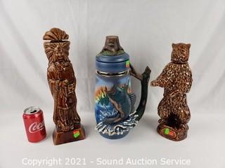 Lot #0175: 3pc Vtg. Ceramic Steins & Decanters