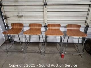 Lot #0025: 4 MCM Teak Low Back Counter Height Chairs