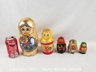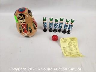 Lot #0219: 4 Russian Nesting Dolls & Bowling Game