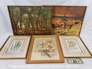 Lot #0346: 5pc Vtg. Floral & Other Artwork