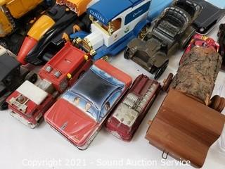 Lot #0111:     Assorted Die Cast, Wood & Tin Collectible Cars