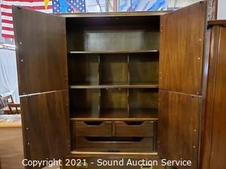 Lot Details: 3 lower drawers, 2 cabinets with sectioned organizer space, 3 drawers and upper shelf. In excellent condition. 80" x 41" x 18".