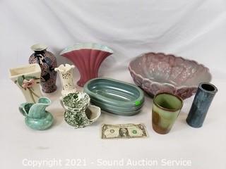Lot #0327: Fine Pottery Vases, Planter, Center Bowl