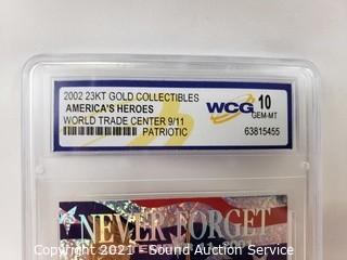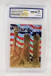 Lot #0292: Graded 2002 23k Gold 9/11 World Trade Center Card
