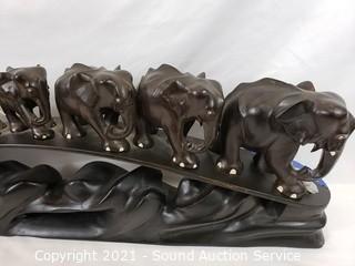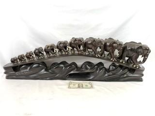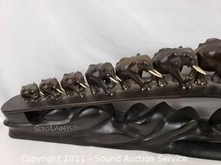 Lot Details: Tusks are not attached to 4 of the elephants, looks like it comes with all or most all tusks. Made in Sri Lanka. 10" H x 36" L x 3.5".