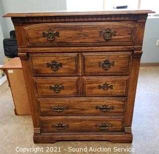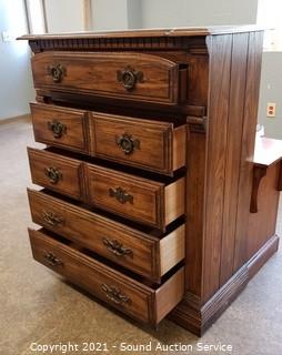 Lot #0042: Nice Oak Finish 5-Drawer Highboy Dresser