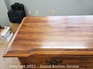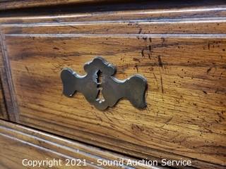 Lot Details: Matches the previous lot. One drawer pull is not attached, comes with the piece, some minor wear, overall great condition. 48" x 40" x 19".