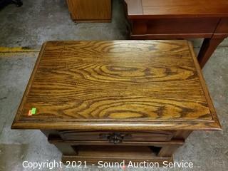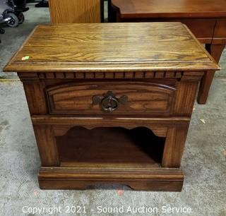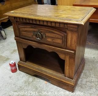 Lot #0051: Oak Finish Single Drawer Vintage Nightstand