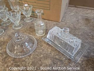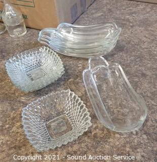 Lot Details: Dessert dishes, butter dish, corn dishes, bowls & more.