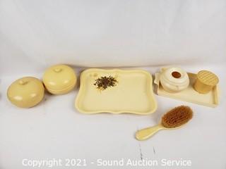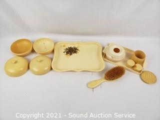 433 lots including; MCM Danish Teak Furniture, Beautiful Oriental Inspired Furniture, Large Ornate Gold Gilded Mirror, Nice Beige & Green Rattan Wove 4pc Patio Set, Vintage Fine China, Pottery, Glassware (Haeger, Lenox, Fenton, Westmorland, Royal Doulton, McCoy, Sadler, Occupied Japan, Bauer & many More brands), Genuine Mink Scarves, Genuine Eel & Snakeskin Ladies Handbags, 4 Nice Vintage Handcrafted Pipes, Vtg. Chilkat Tingit Beaded Fur Moccasins, Handcrafted Wood Titanic Model Ship, Russian Nesting Dolls, Men's & Women's Watches, Vtg. Glass & Ceramic Insulators, Vtg. Records, Artwork, Collectibles & Much More!!!