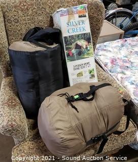 Lot #0386: 2 Sleeping Bags & 7x7ft 3 Person Dome Tent