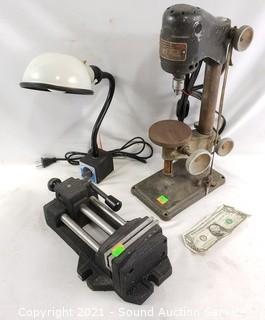 Lot #0242: Benchtop Drill Press, Vise & Articulating Lamp
