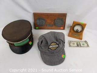 Lot #0147: Conductor Cap, Train Plaque & Milliamperes Meter