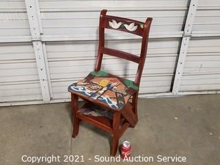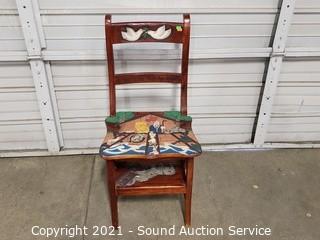Lot #0038: Handcrafted Noah's Ark Amish Folding Chair Ladder