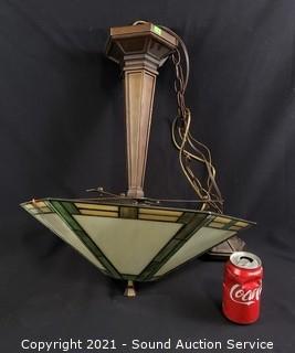 Lot Details: 22" x 17" Lamp with 24" long chain, standard 110v plug. Works.